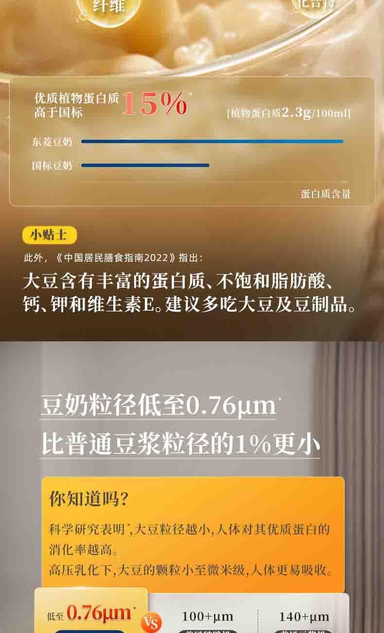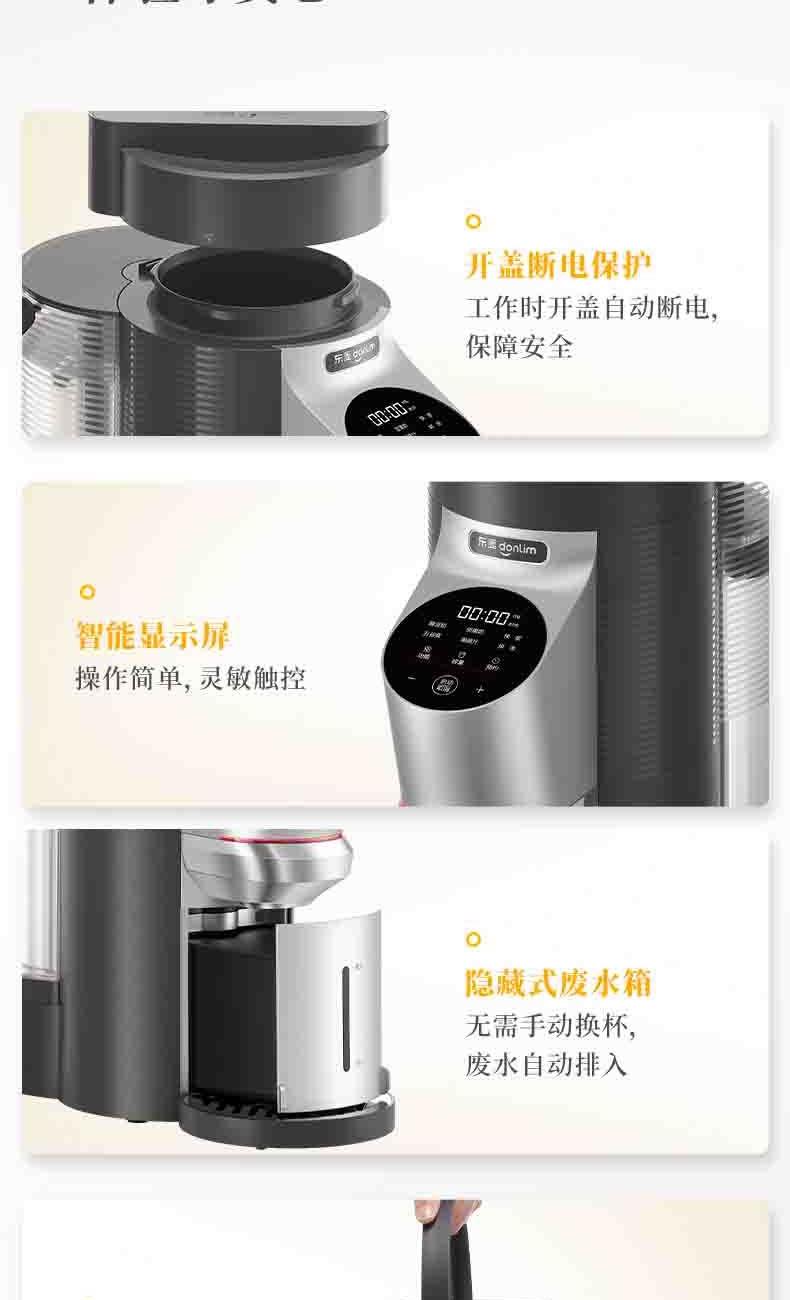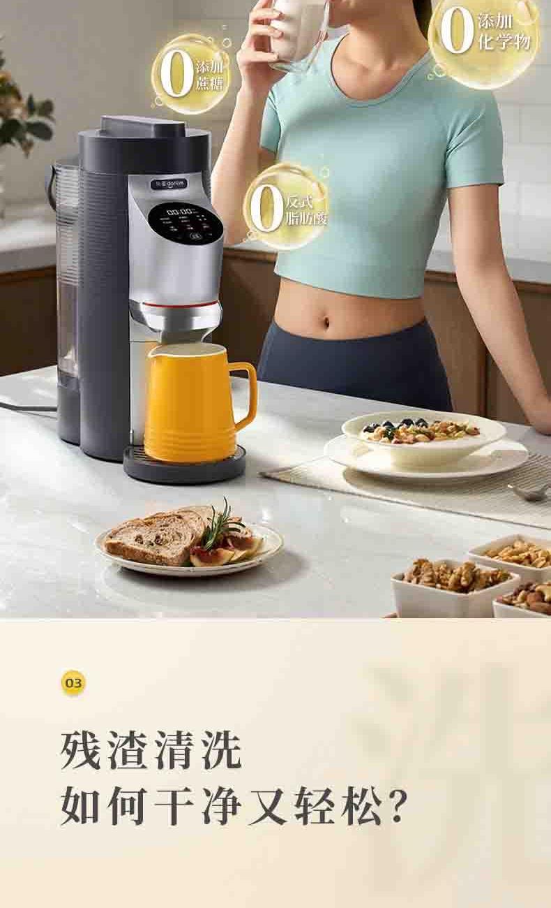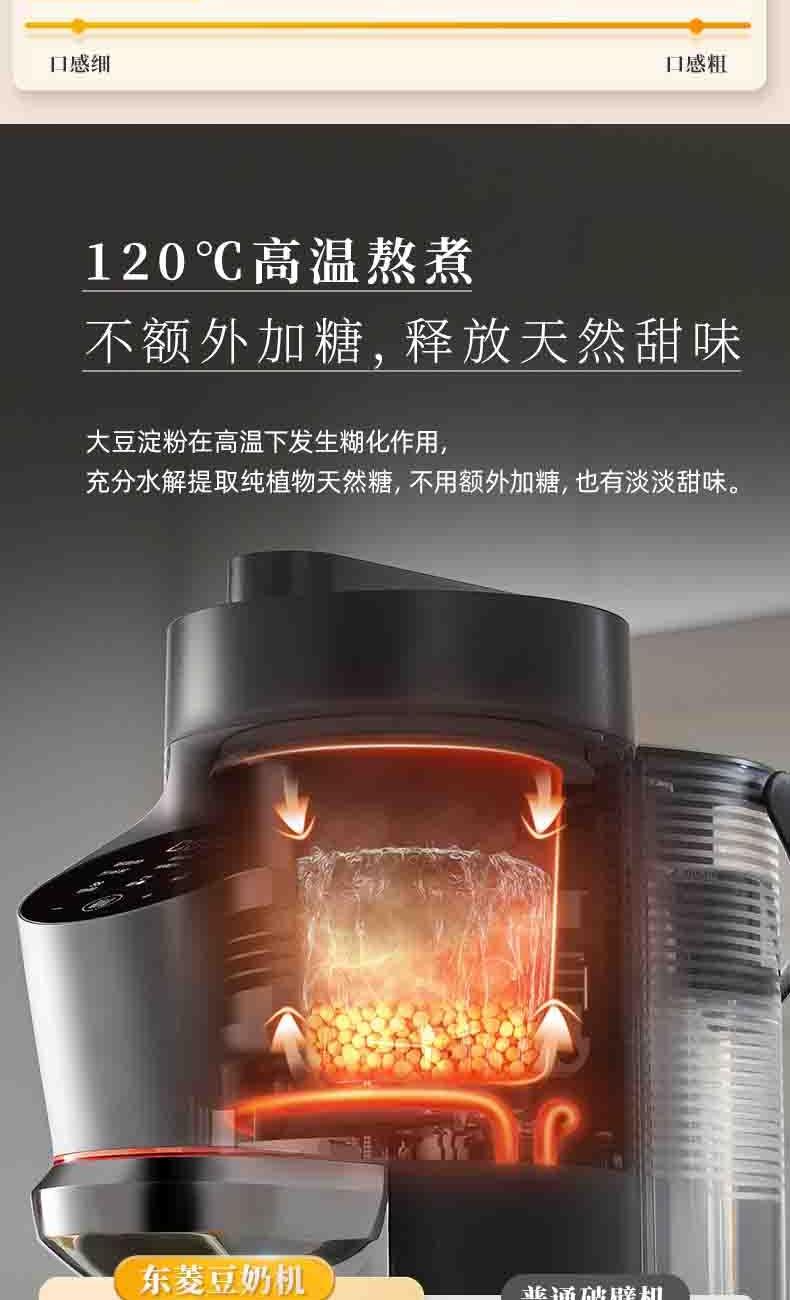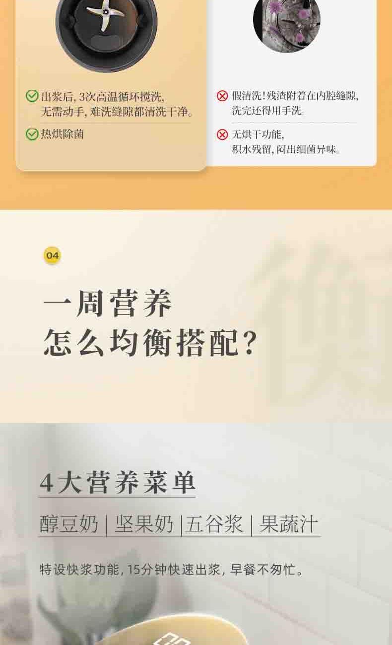 容量:300ml/600ml可选 功率:1400W 毛重:9.82kg 产品尺寸:181*402*430mm 包装尺寸:574*270*557mm 配置:600ml陶瓷杯+300ml玻璃杯1.120kPa高压乳化成奶,大豆粒径低至0.76μm,好吸收 2.120℃高温熬煮,避免豆腥味,释放豆子天然甜味 3.24小时预约水豆分离,热水自动烘洗 4.醇豆奶 坚果奶 五谷浆 果蔬汁 快浆 洪洗