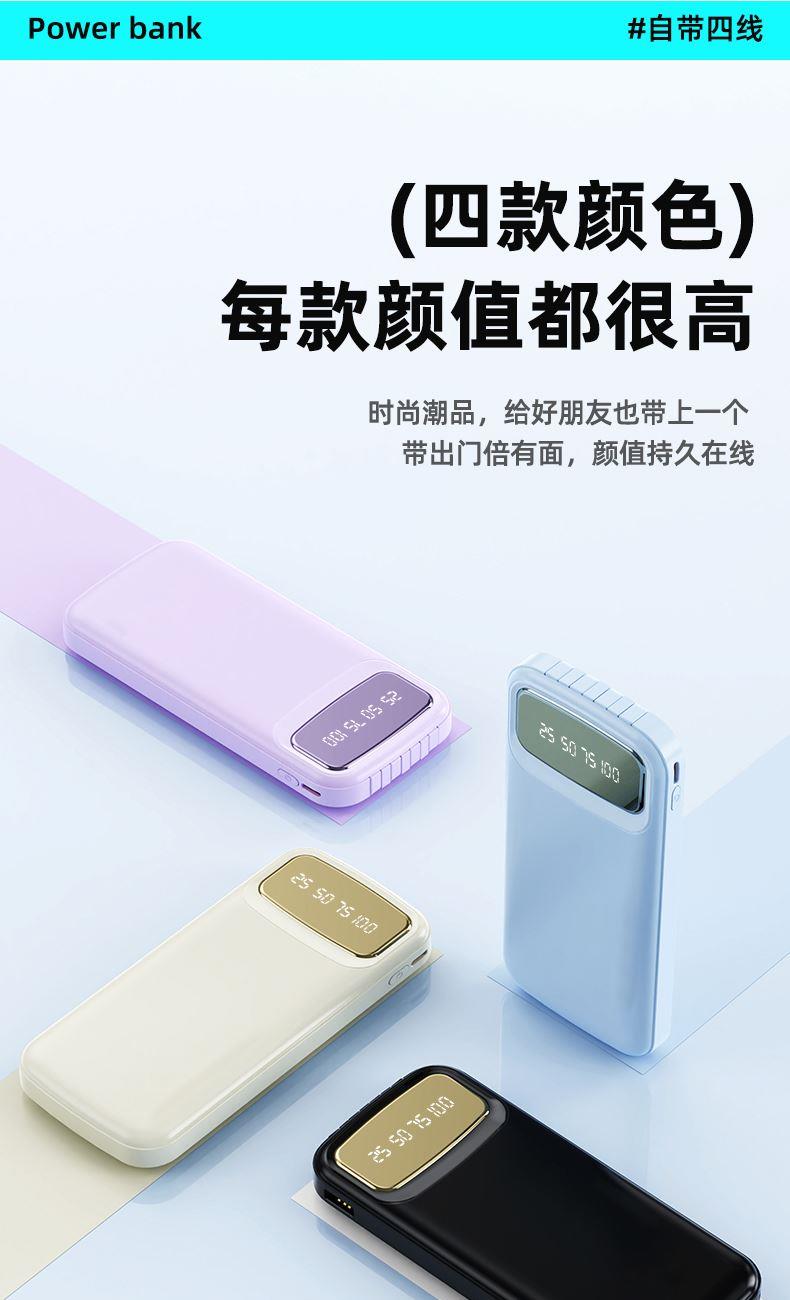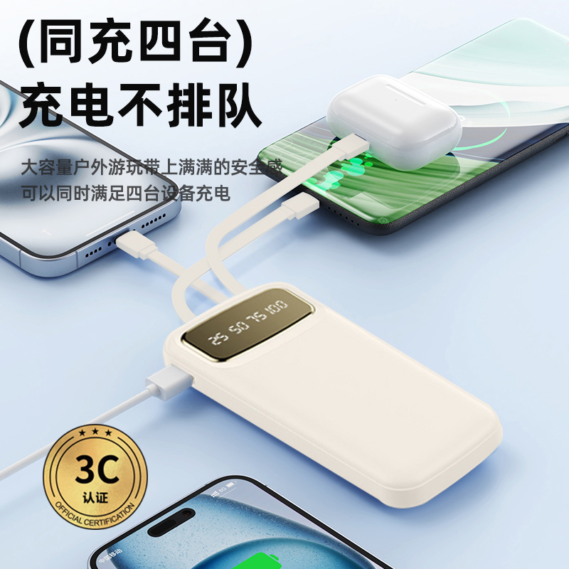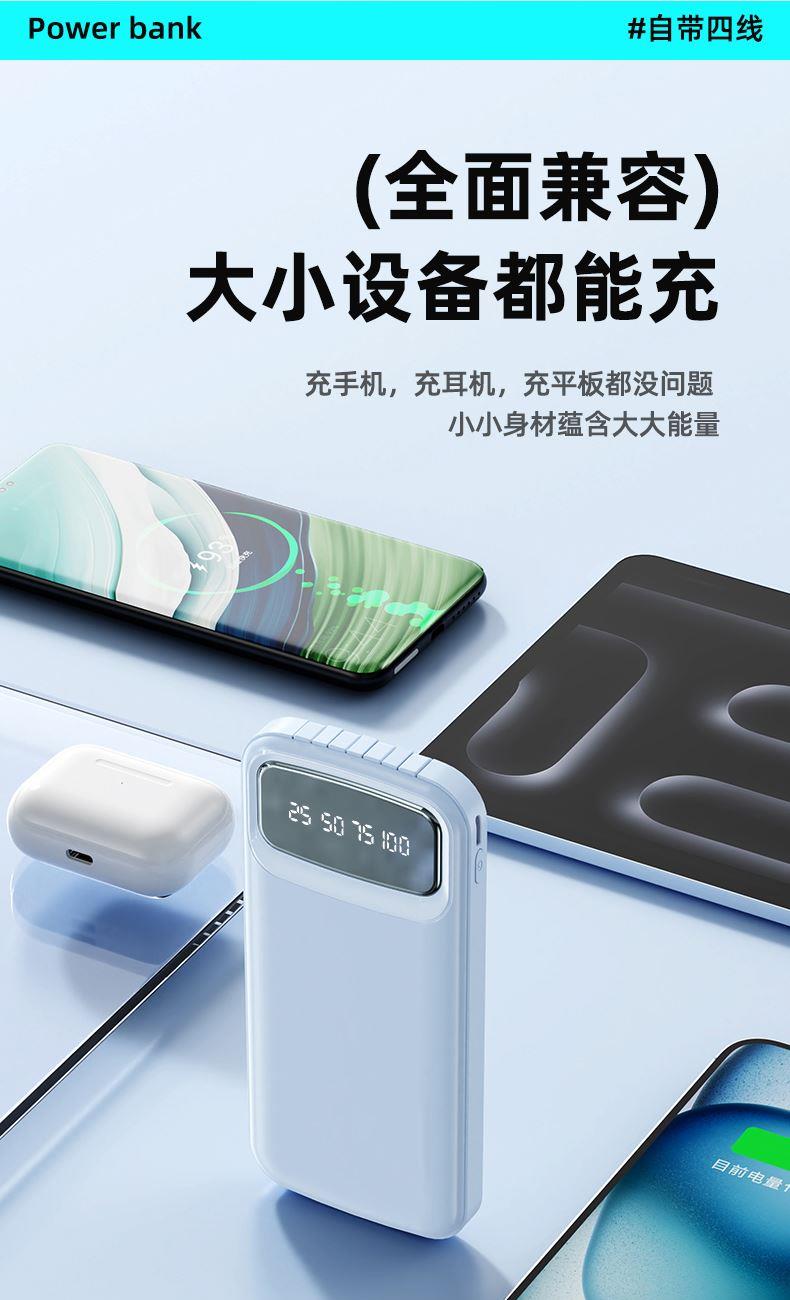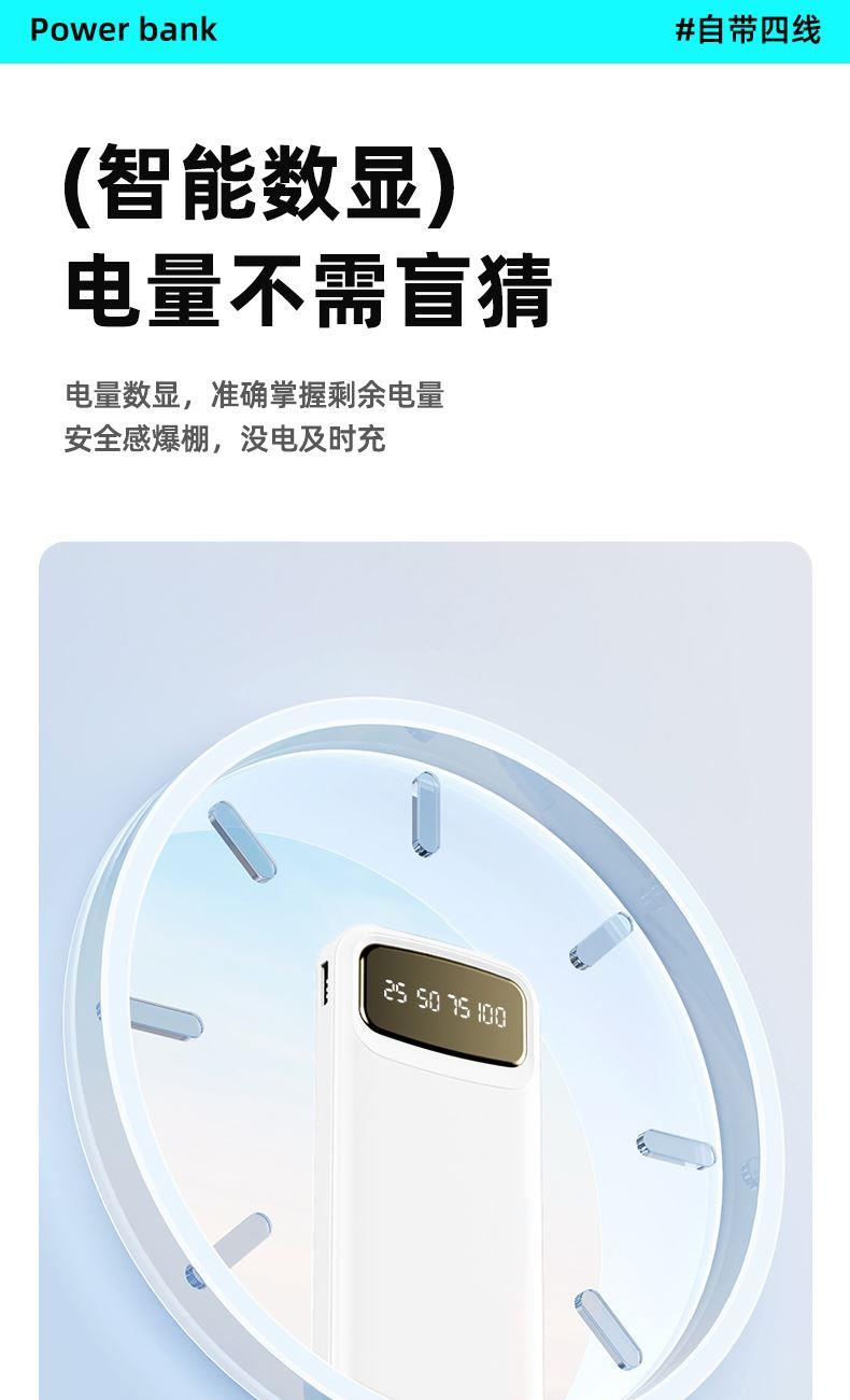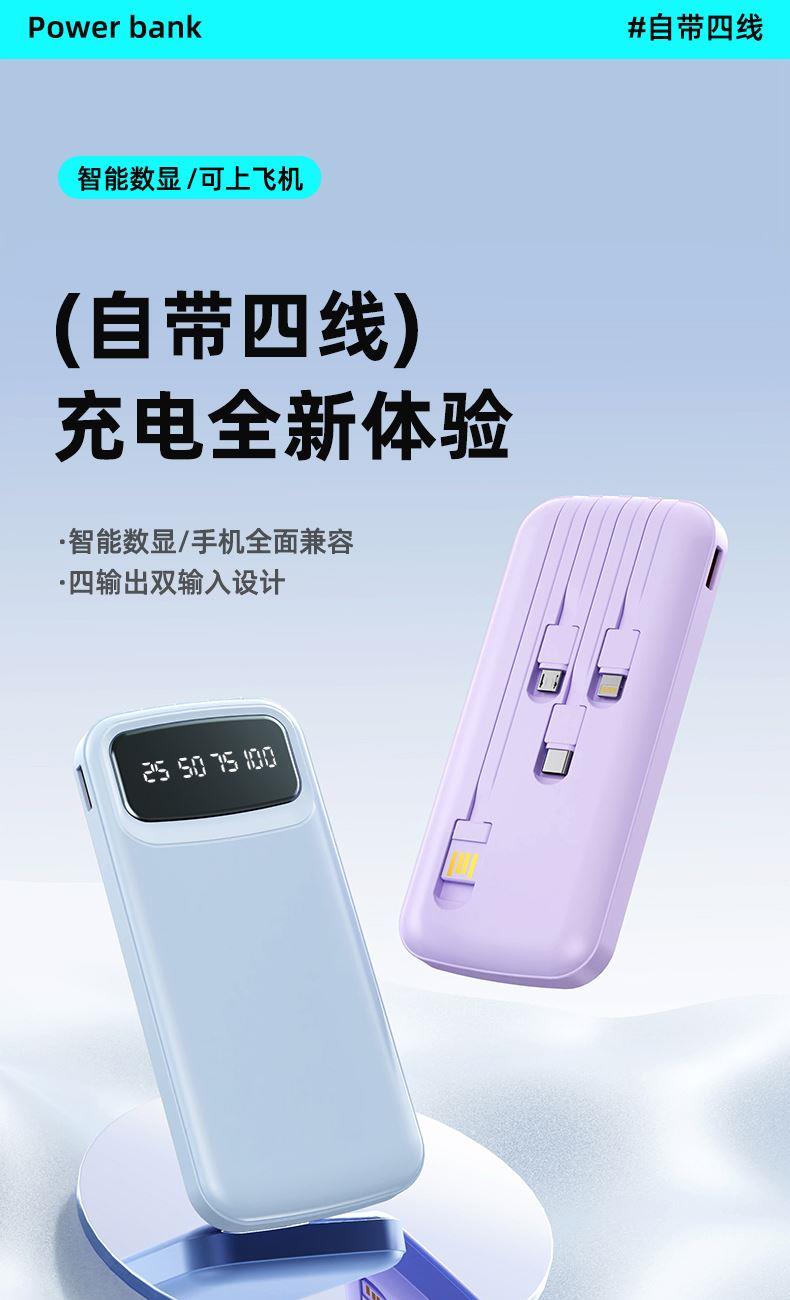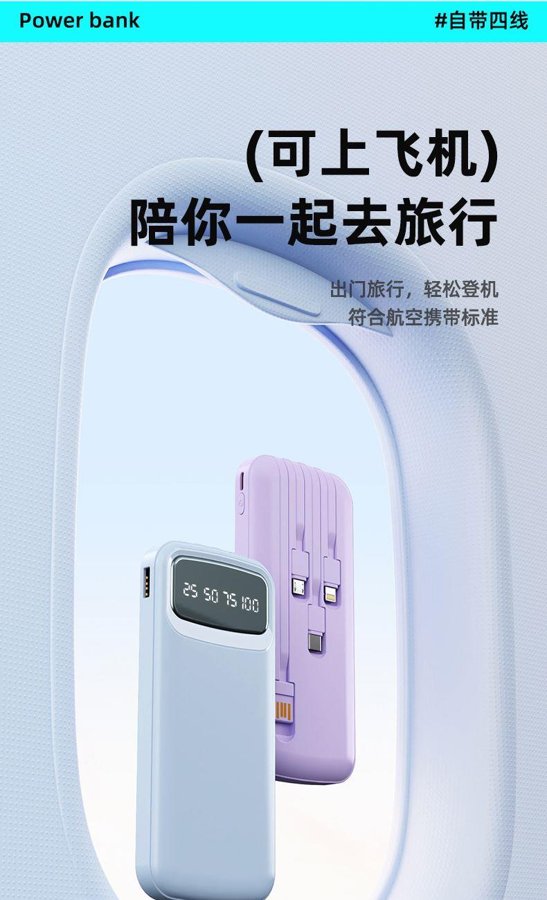数字电量显示,3C认证 内置四线满足各种手机充电 10000/20000毫安双版本 符合民航局标准,可随身携带
