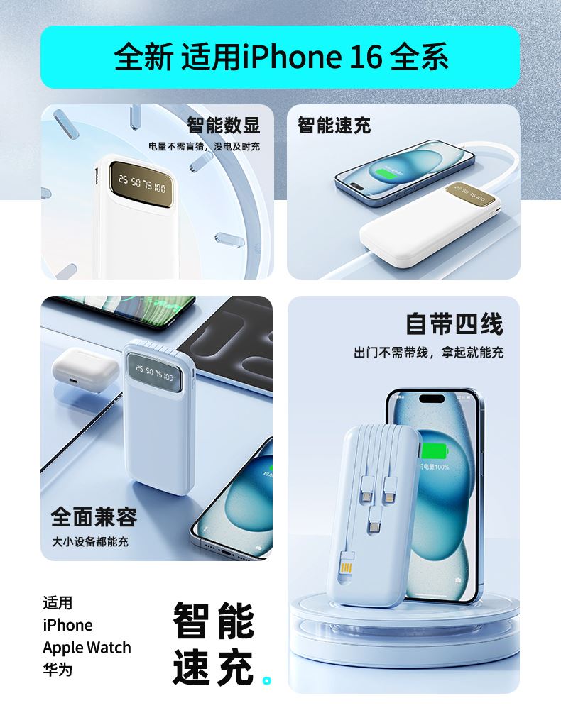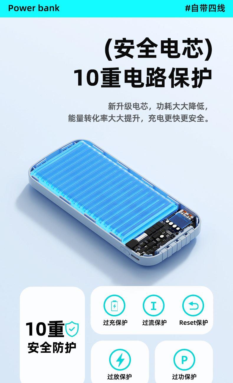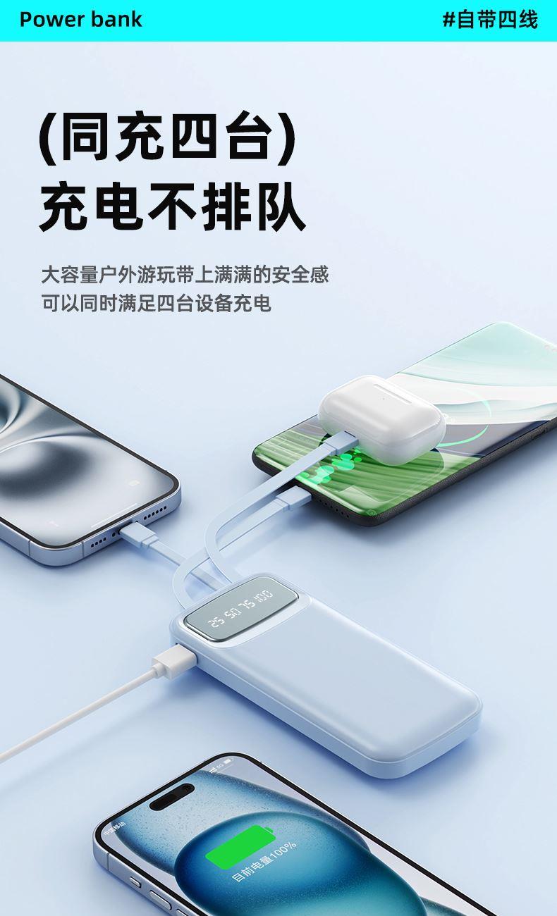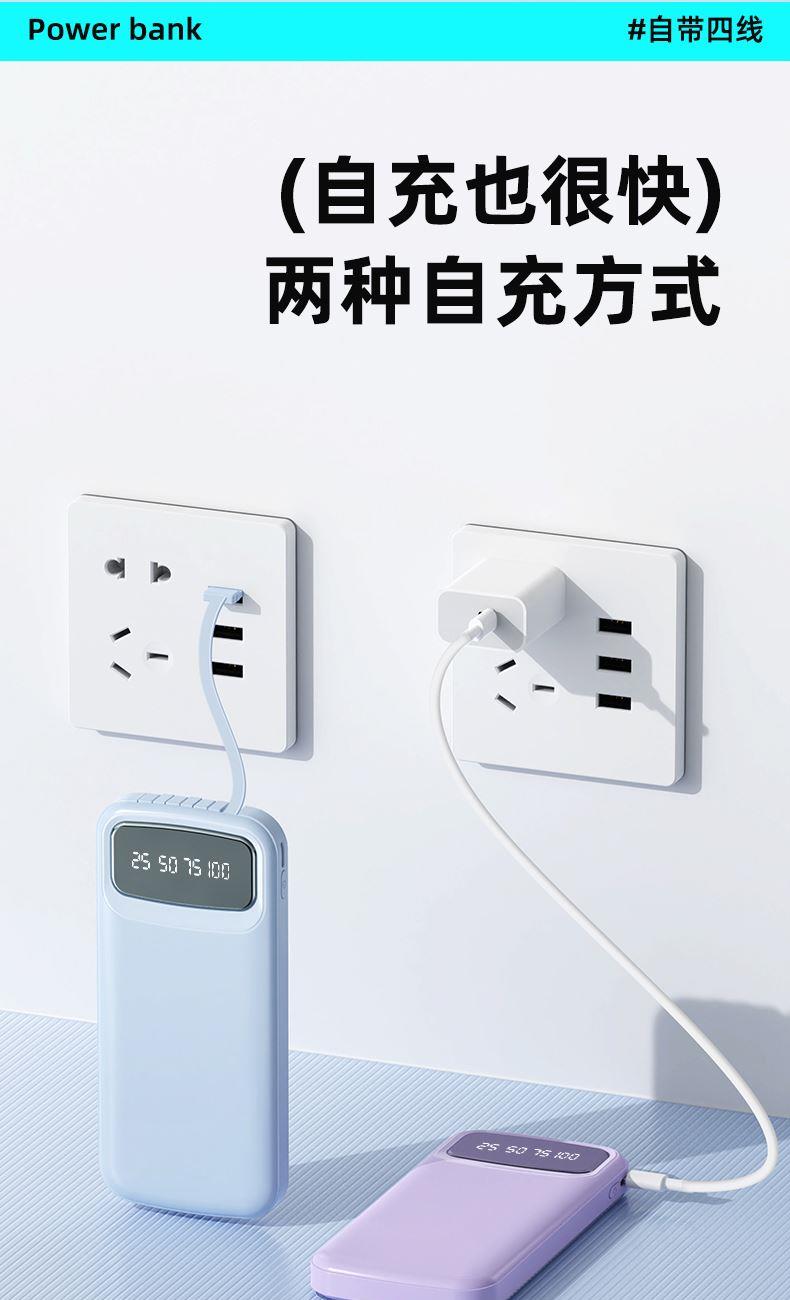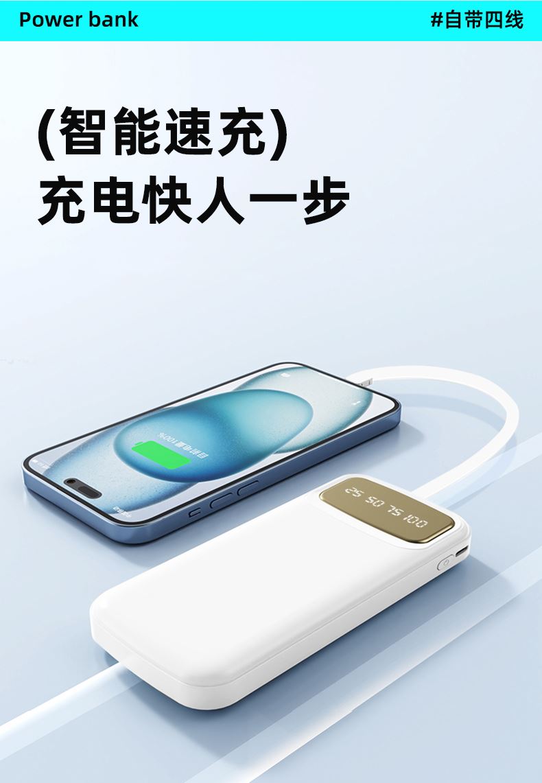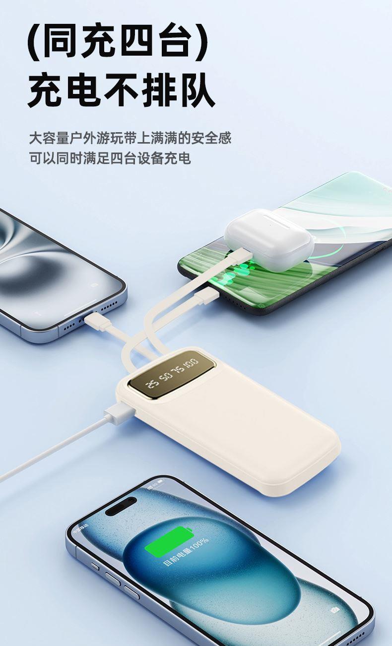 数字电量显示,3C认证 内置四线满足各种手机充电 10000/20000毫安双版本 符合民航局标准,可随身携带