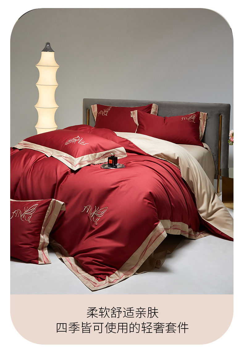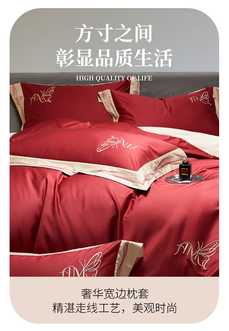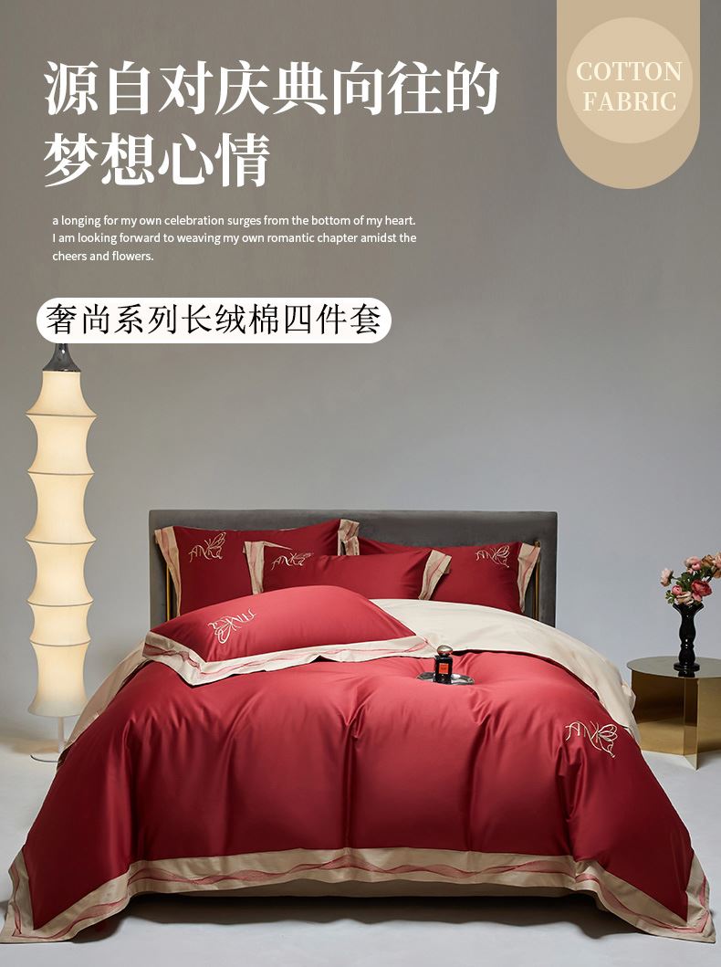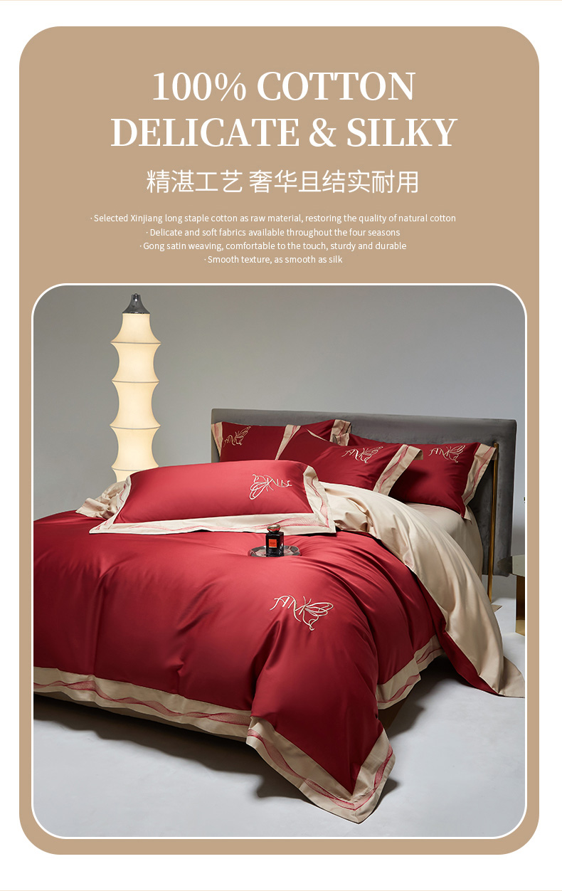 被套:200*230cm 床单:230*245cm 枕套:48*74cm*2 面料:100支长绒棉 产品包装:精美礼盒 包装尺寸:43.5*33*10cm 特点:采用长绒棉棉高密活性印染,洗后不易脱色、不变形、不起球,依然如新。绿色无污染,手感细腻柔软,经纬额度均匀,面料厚实不起球,不缩水。