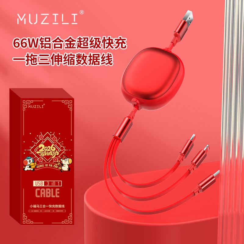 MUZILI·66W商务铝合金一拖三超级快充伸缩数据线
