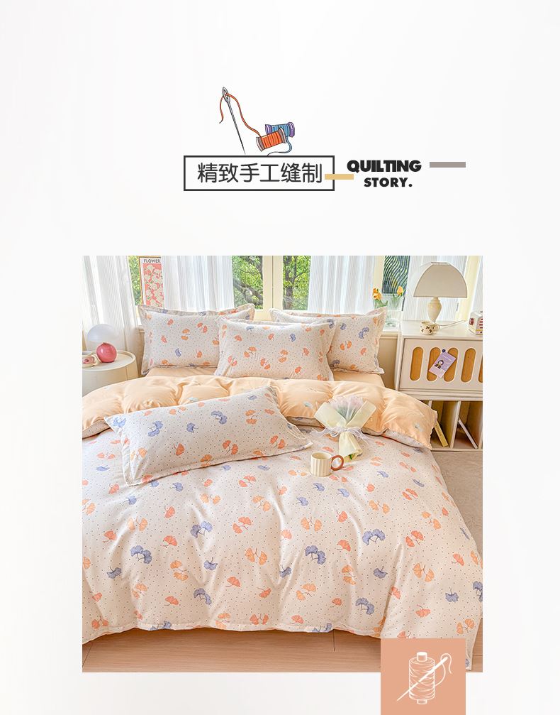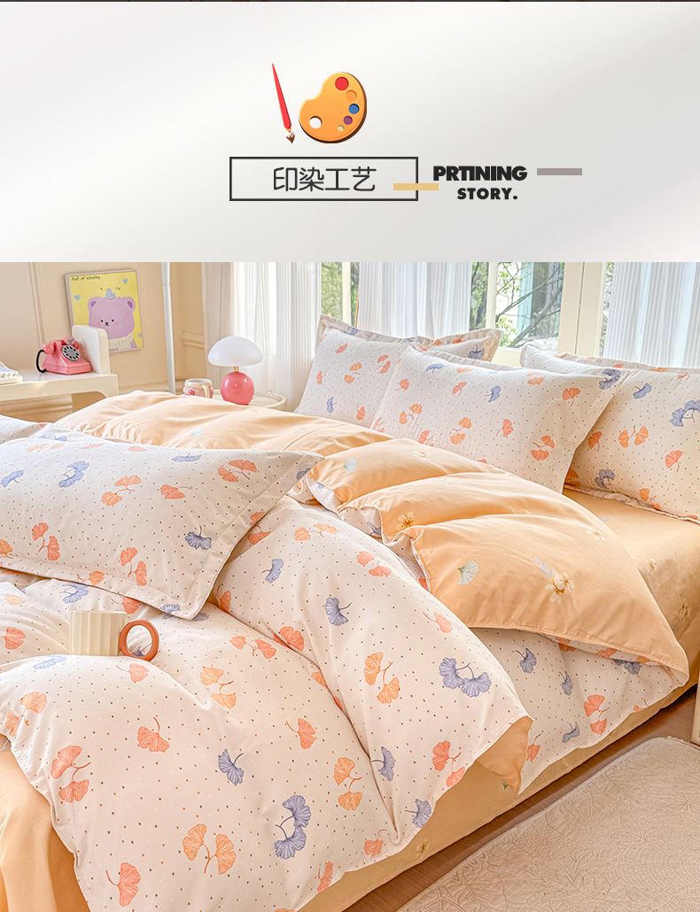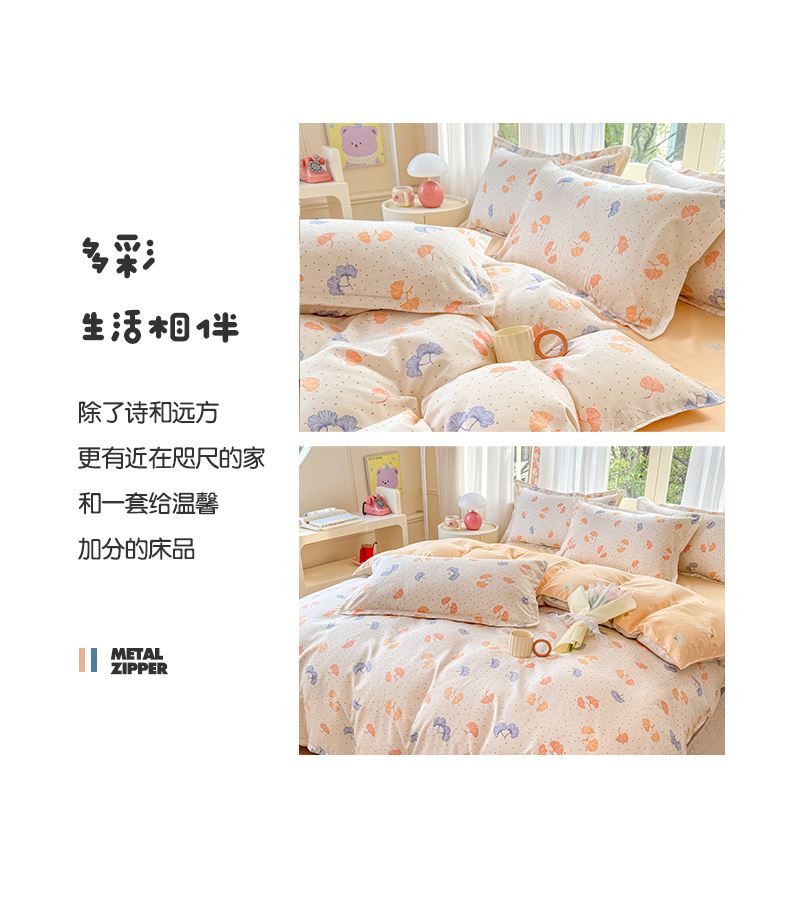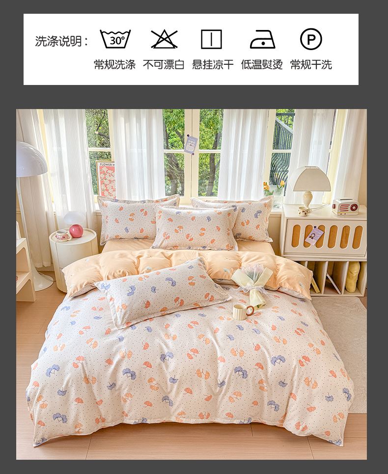 被套:200×230cm 床单:230×230cm 枕套:48×74cm 适用:1.5M-1.8M床 面料:磨绒(聚酯纤维) 印染工艺:环保印花 包装:精美手提盒 甄选柔肤棉面料,质地柔软 细腻,搭配时尙印花点缀柔和色彩的选择 手感舒适亲肤细腻 ,一起感受美好邂逅。