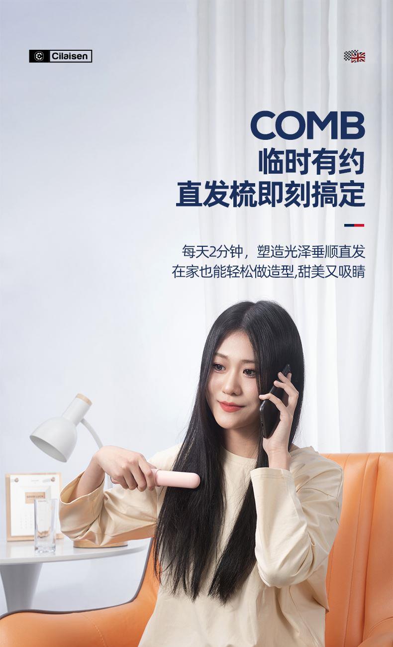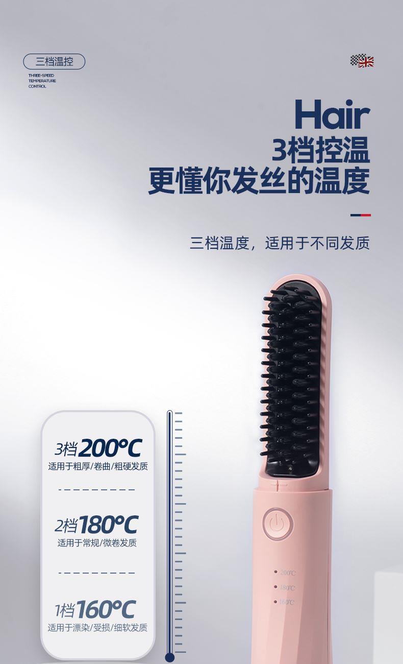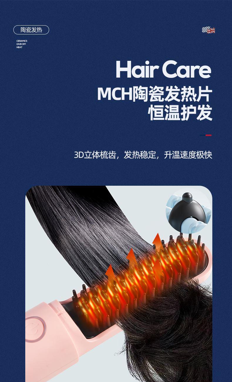 4、 3D立体梳齿,发热稳定,防烫齿梳,不伤头皮不烫手