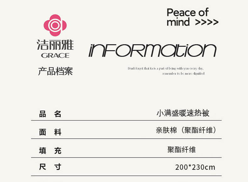 洁丽雅小满盛暖速热被CP3622