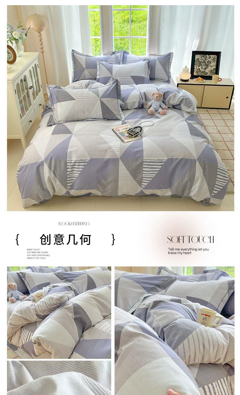 被套:200*230cm 床单:230*250cm 枕套:48*74cm*2 面料:生态磨毛 ▶磨毛,纤维柔长,绒毛更加丰盈密集,柔软细腻,亲肤呵护,保暖加倍。 ▶采用活性印染工艺,色彩靓丽,耐洗不易褪色,久用如新。