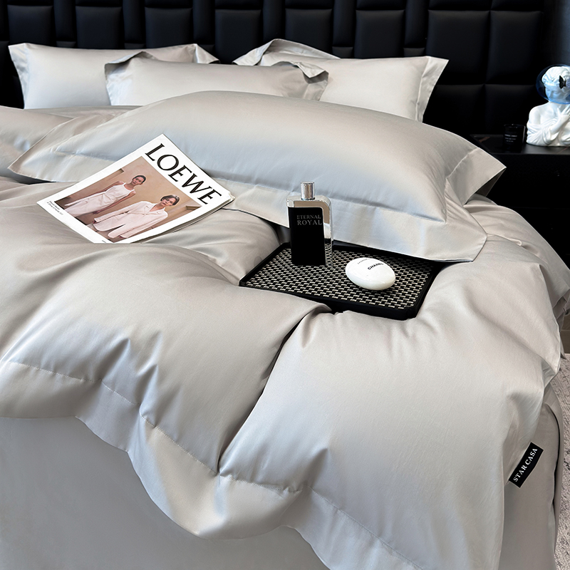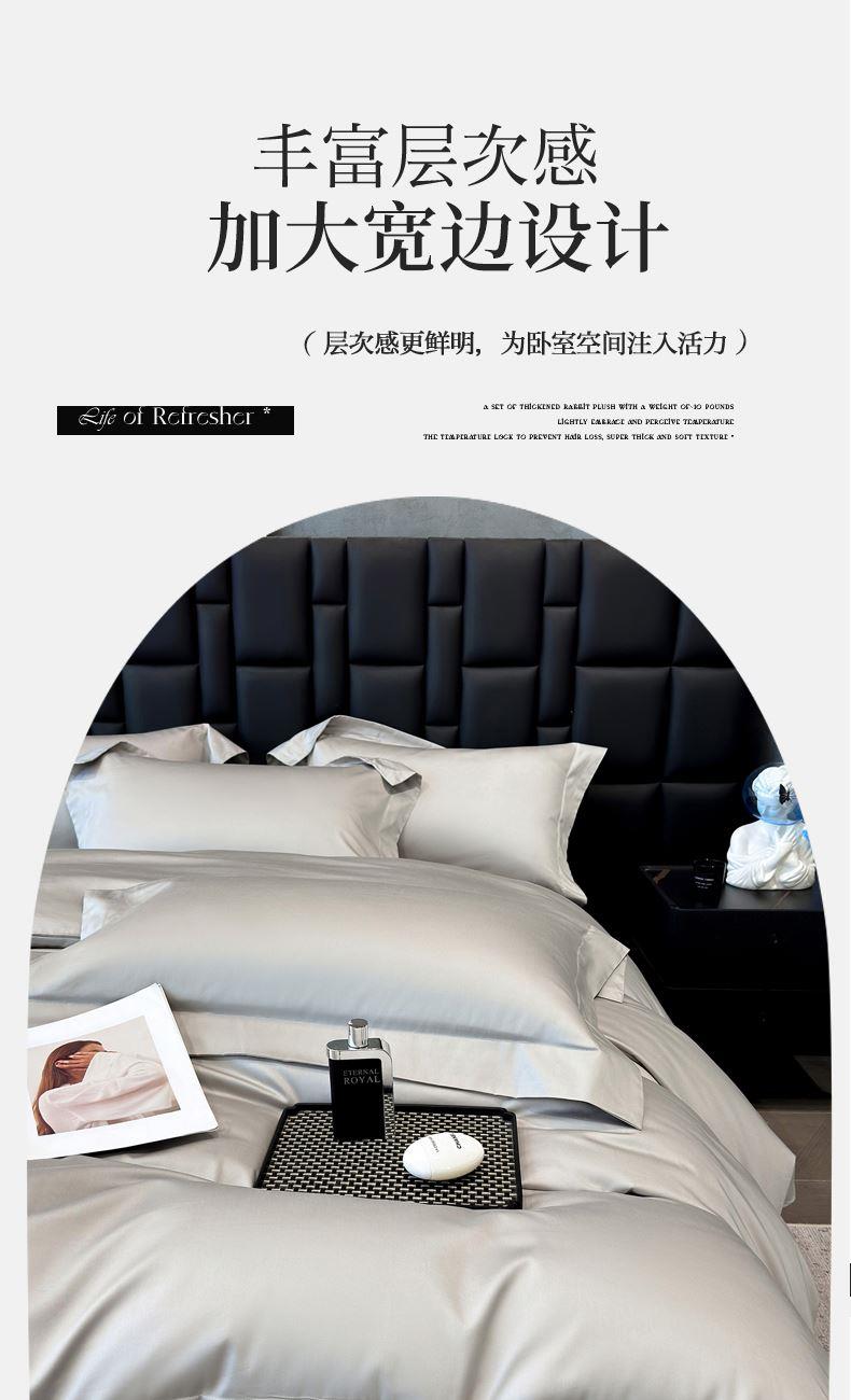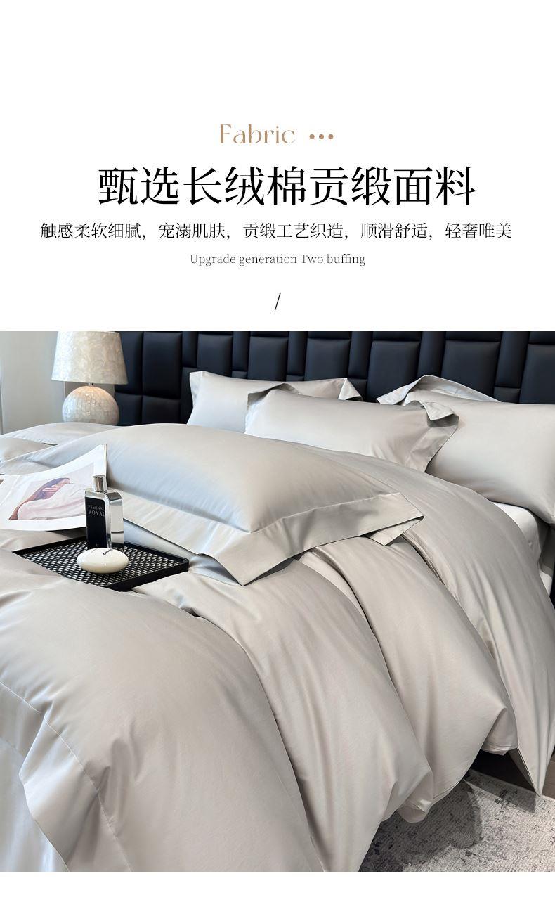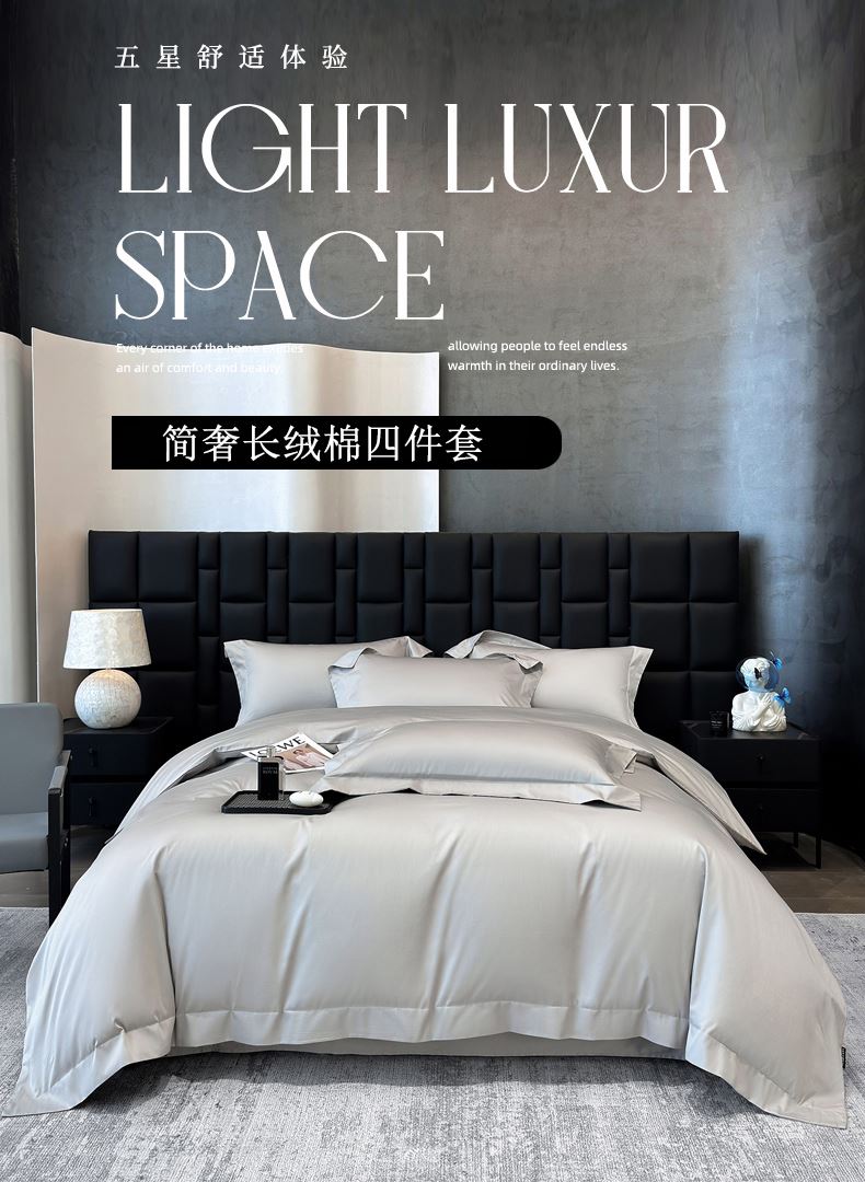 被套:200*230cm 床单:245*250cm 枕套:48*74cm*2 面料:长绒棉 产品包装:精美礼盒 包装尺寸:43.5*33*10cm 特点:长绒棉具备非常高的舒适度及“质感”,纤维柔长。具有丝绸般光滑、垂感好,面料色牢度高,久洗不褪色,耐磨耐用,抗皱性好,不易起球。