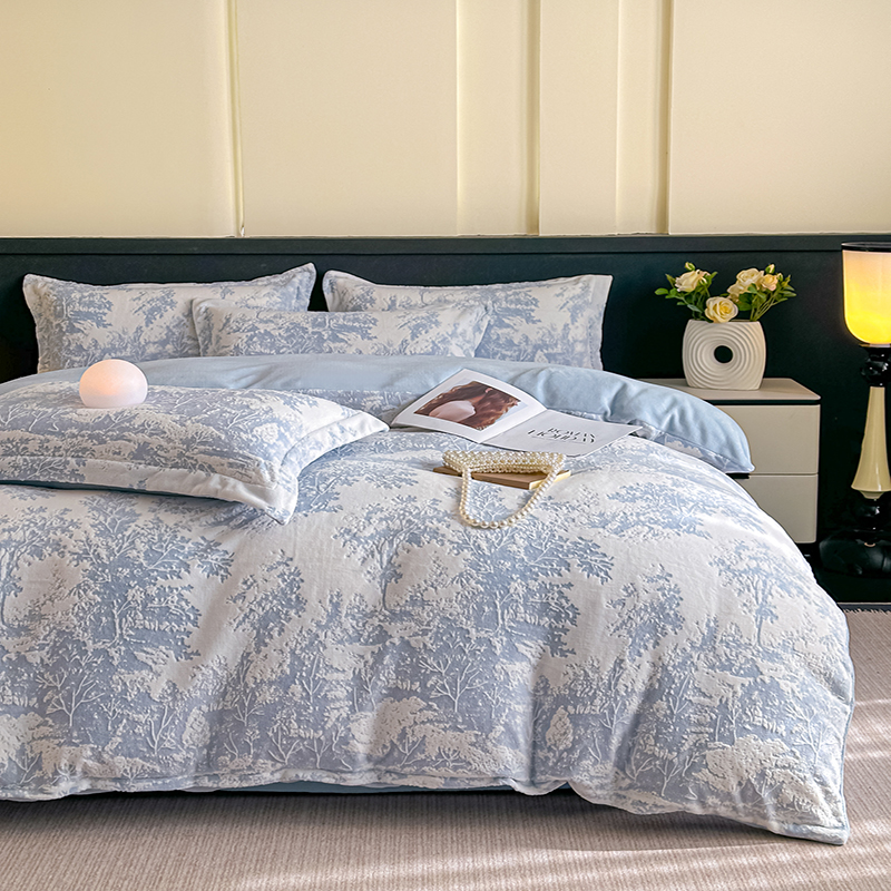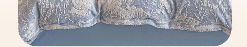 被套:200*230cm 床单:240*250cm 枕套:48*74cm*2 面料:牛奶绒 ▶牛奶绒面料,享温暖,用身体去感触。 ▶牛奶绒面料质地蓬松,透气性好,温暖舒适,云朵般细腻。