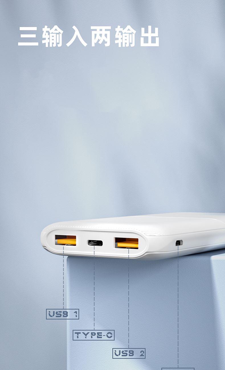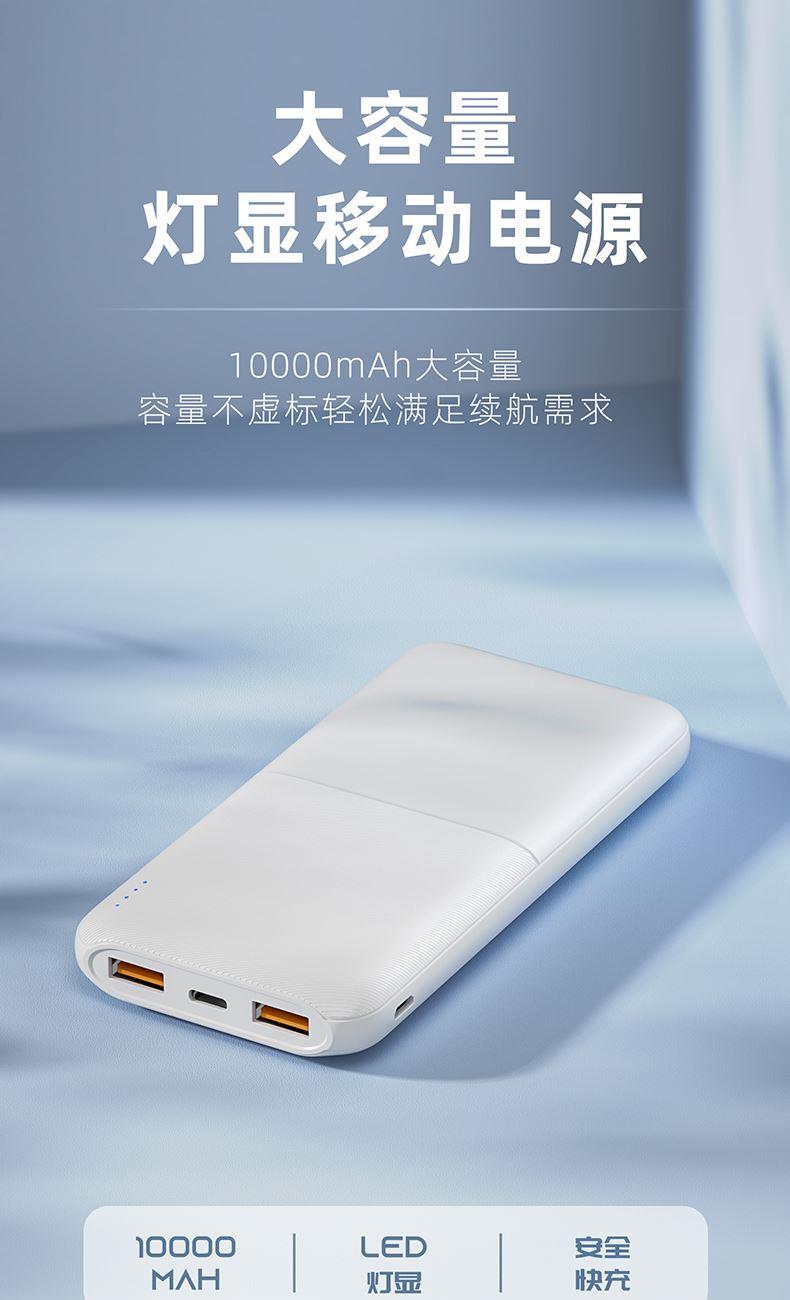 1万毫安电池容量,3C认证 LED电量显示 双USB接口同时充电 经典外观设计设计 符合民航局标准,可随身携带