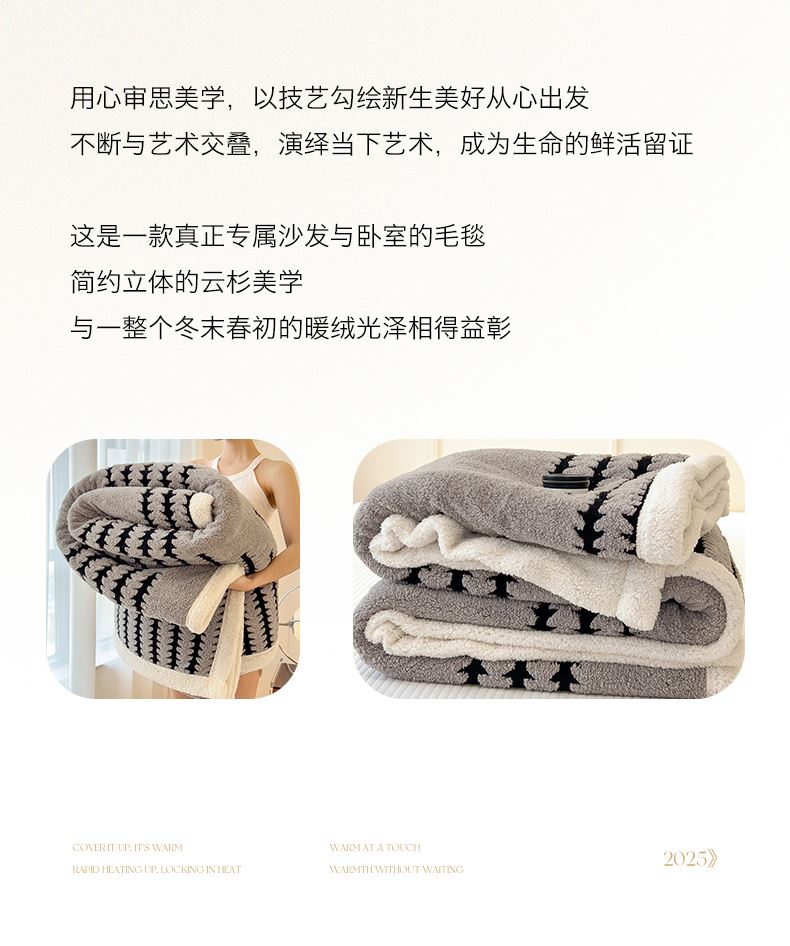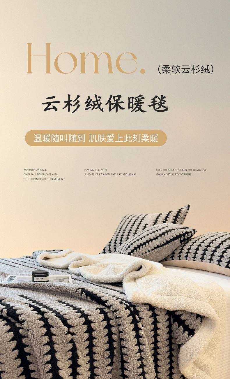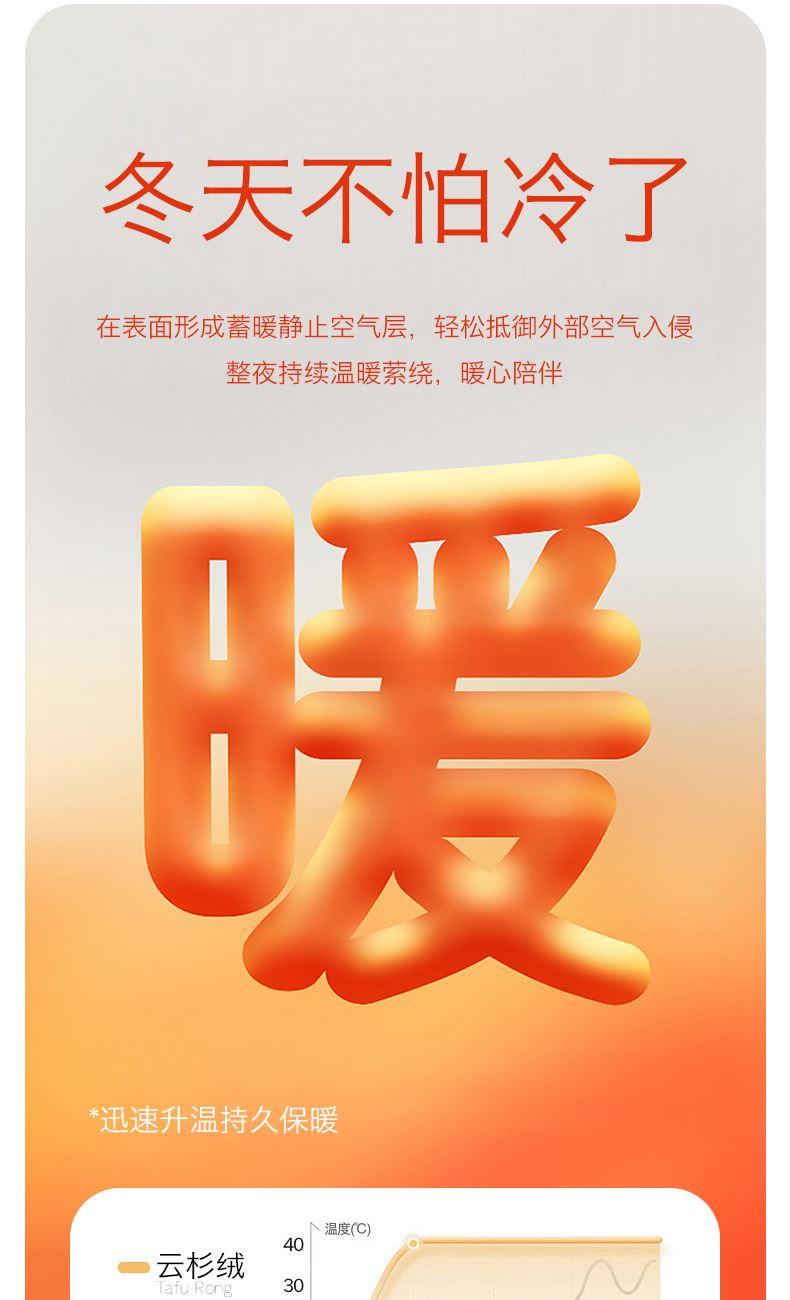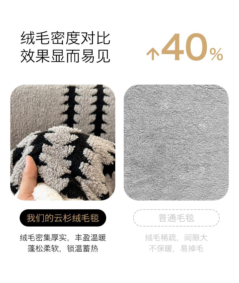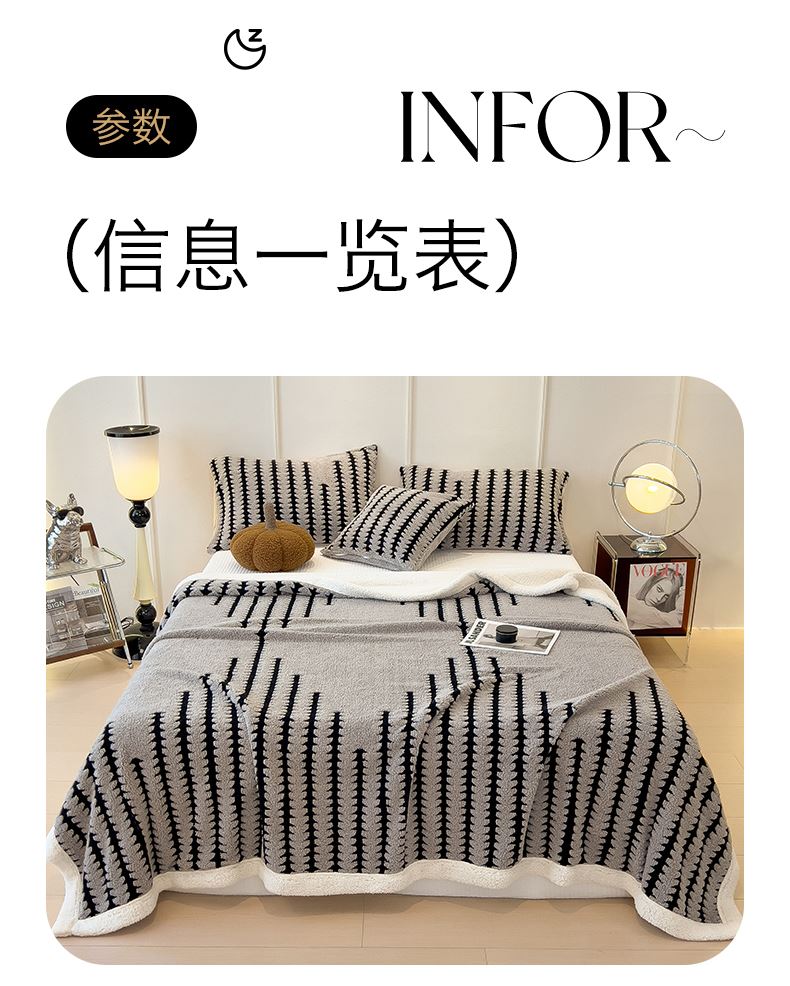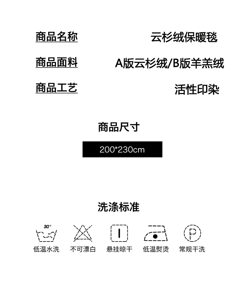 [ 规格 ]:200*230cm [ 面料 ]:A版云杉绒/B版羊羔绒 [ 克重 ]:1900g 1.向暖而生云杉绒,绒毛密集厚实,丰盈蓬松柔软,厚实亲肤,锁温蓄热。 2.柔软亲肤,保留原始的温暖质感,动态循环调节热感平衡,像冬日里厚实的羊毛大衣,为你温暖锁热一整夜。 3.拥有丰厚的绒毛,手感细腻顺滑,触感更温润。拥抱就爱上。