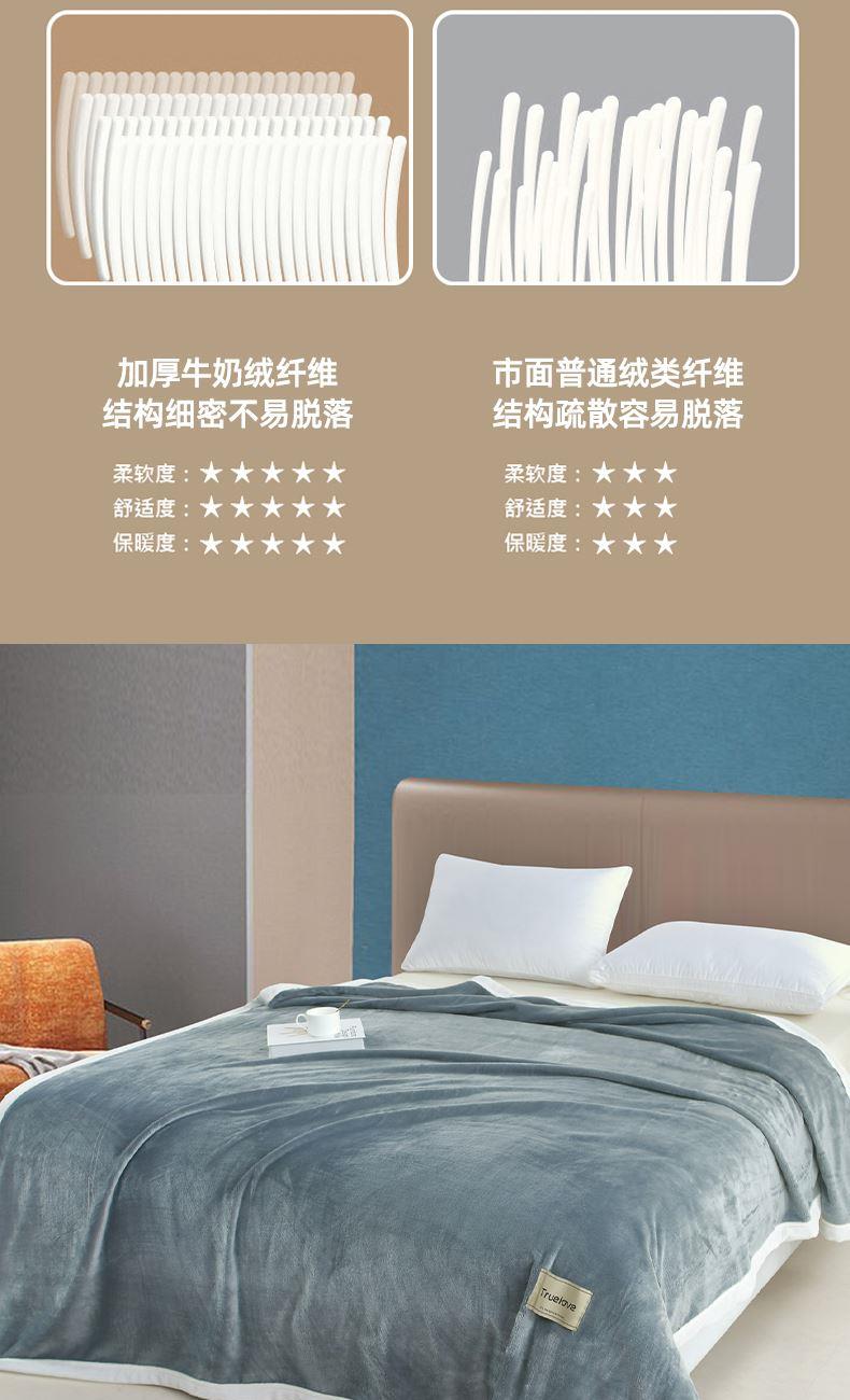 规格:200*230cm 面料:牛奶绒 克重:1500g 产品包装:精美礼盒 包装尺寸:48*35*16cm 特点:牛奶绒面料,充分吸收汗气蒸发产生的热量, 舒适透气,精美大方,绒感细腻,呵护您娇嫩 肌肤新型植绒技术,绒毛结构丰盈紧实,不 易掉毛告别掉毛烦恼。