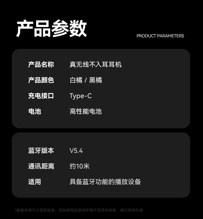 颜色:银灰色 黑色 材质:铝合金+ABS+电镀 容量:耳机40mAh 耳机舱300mAh 包装:彩盒包装 云感佩戴挂耳设计 久戴不累 定向传音技术 V5.4蓝牙版本 智能通话降噪触摸式功能操作 数字屏电量显示 一目了然 亲肤硅胶挂绳 指尖陀螺解压
