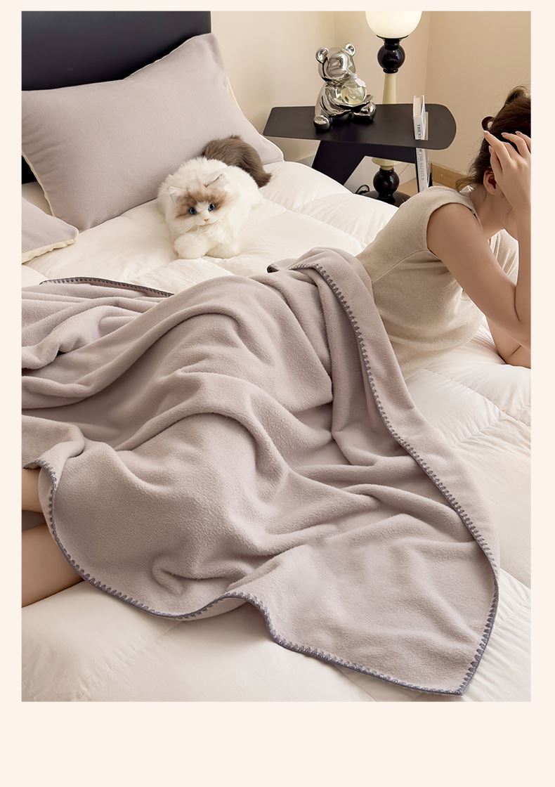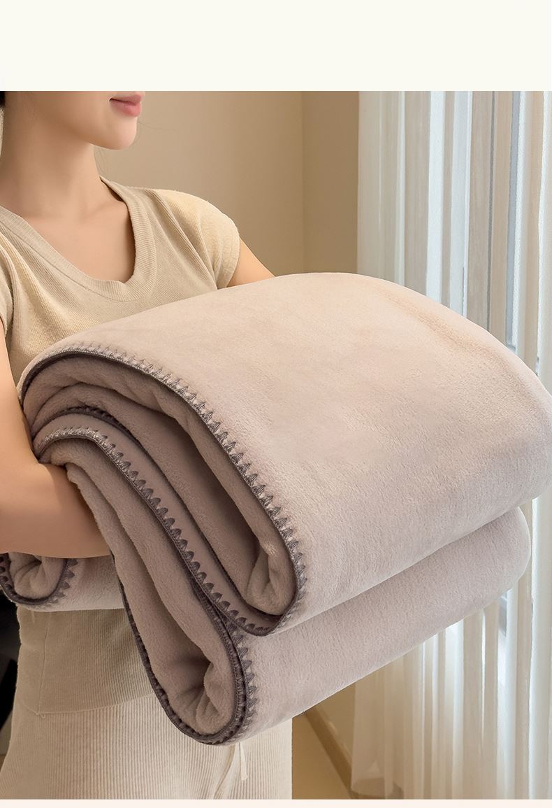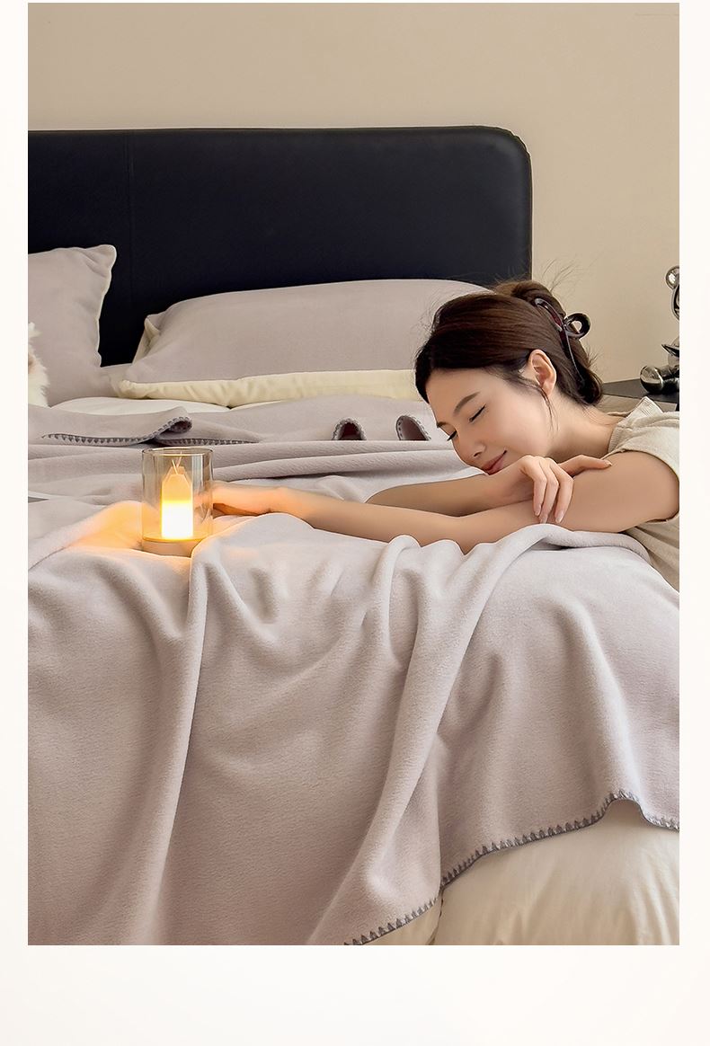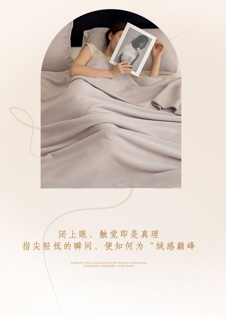 规格:180*200cm 面料:獭獭绒 克重:1100g 产品包装:精美礼盒 包装尺寸:48*35*16cm 1.獭獭绒面料纤维细腻蓬松,触感柔软、顺滑亲肤。 2.面料柔和细腻,保暖性突出,轻盈不压身,盖在身上无压迫感。