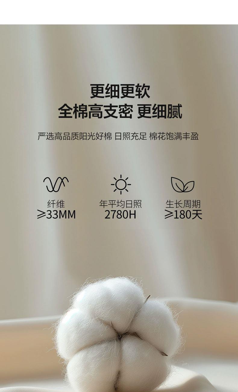 被套:200*230cm 床单:230*250cm 枕套:48*74cm*2 面料:高支棉全棉 特点:全棉面料舒适、温度平衡,接受皮肤时感到柔软而不僵硬。棉纤维是天然纤维。纯棉织品与肌肤接触无任何刺激,对人体有益无害。