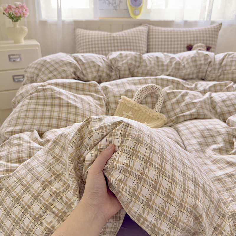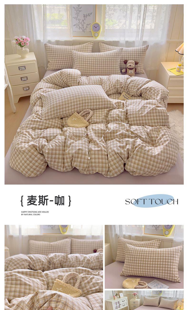 被套:200*230cm 床单:230*245cm 枕套:48*74cm*2 面料:针织棉 产品包装:精美礼盒 包装尺寸:42*33*11cm 1.面料柔软舒适、手感舒适,与肌肤接触时能带来被呵护的感觉。 2.透气性佳、吸湿性强,能够快速吸收身体排出的汗水。产品轻盈,使用时感觉轻松无负担。