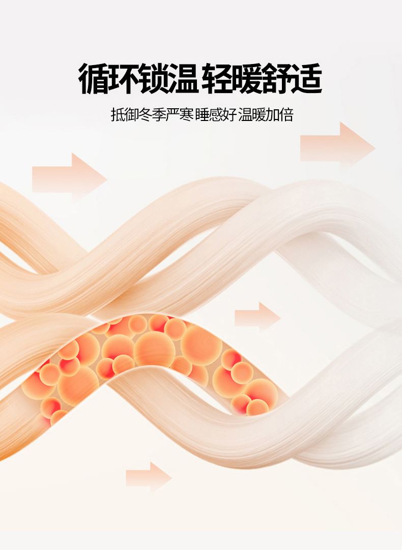 2.内芯填充优质羽丝棉,数千万根超细纤维如蒲公英绒朵般轻盈蓬松,形成亿万储热微气囊。不同于普通冬被的厚重压身,这款被子平衡保暖与轻盈,既能牢牢锁住体温,又保持空气流通性,整夜保持干爽舒宜。