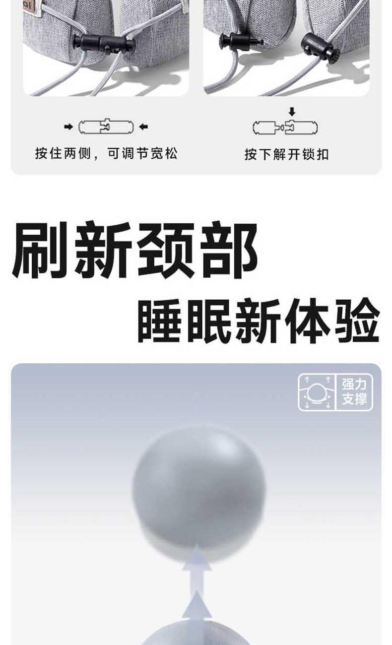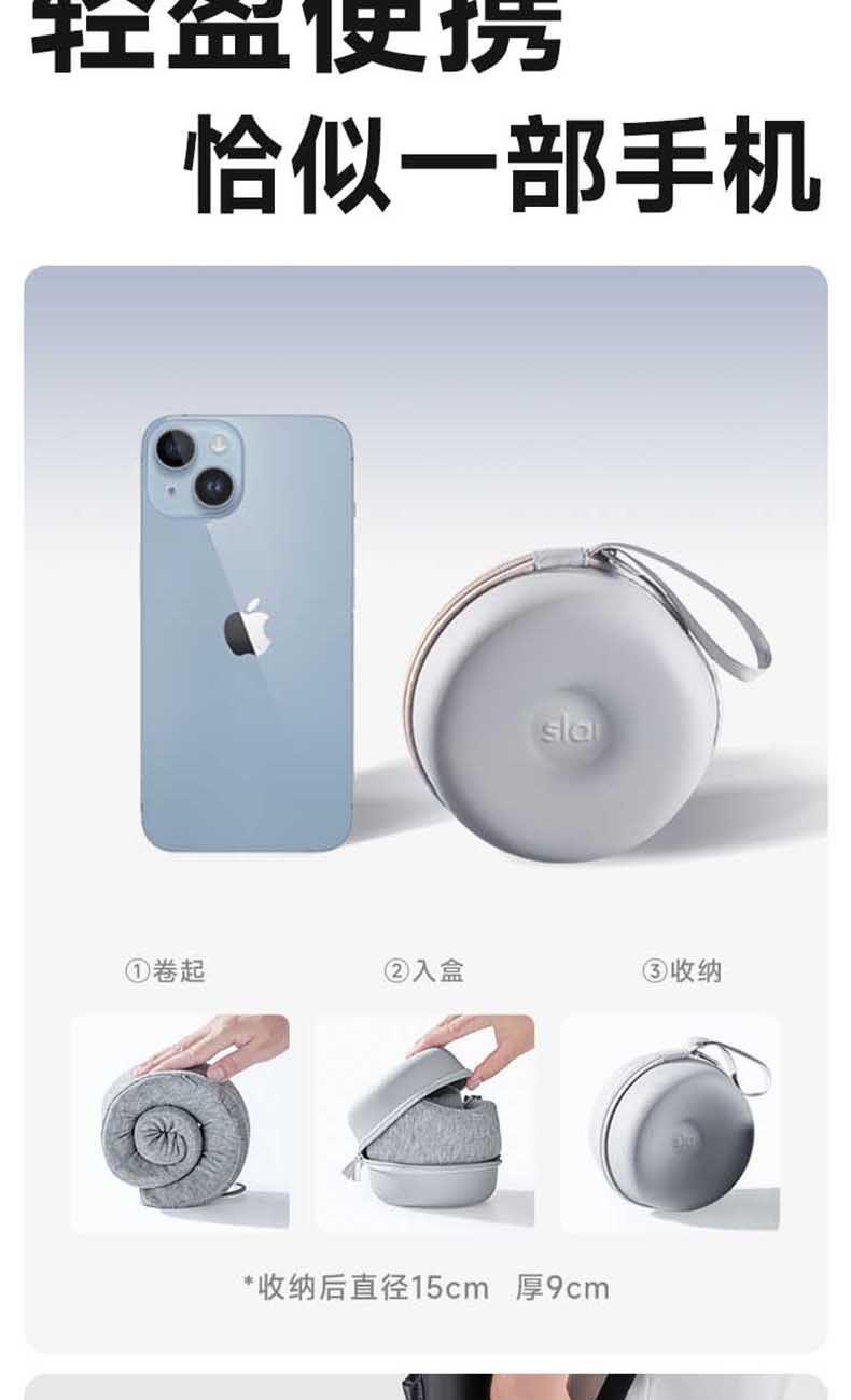 【人体工学设计】能有效的减轻颈部压力。 【可调节拉伸】可随意调节合适大小。 【方便携带】折叠后手机般大小,赠送收纳盒,更易携带。