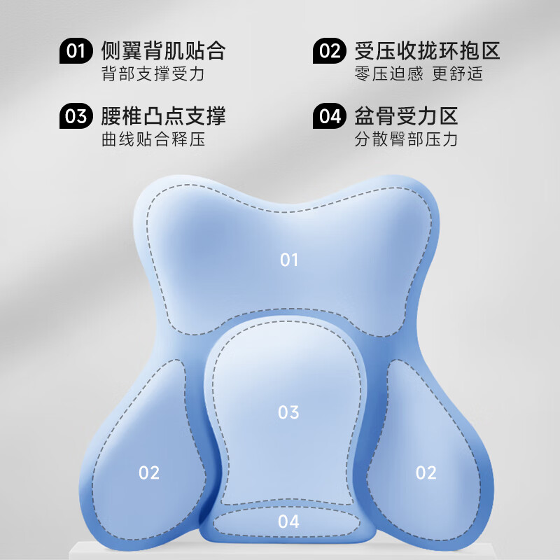 【腰靠坐垫】专为久坐人群设计。 【多方位托付腰部】顶腰不顶臀,贴合支撑。 【曲线人体工学设计坐垫】久坐尾椎舒压。